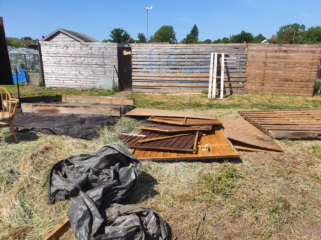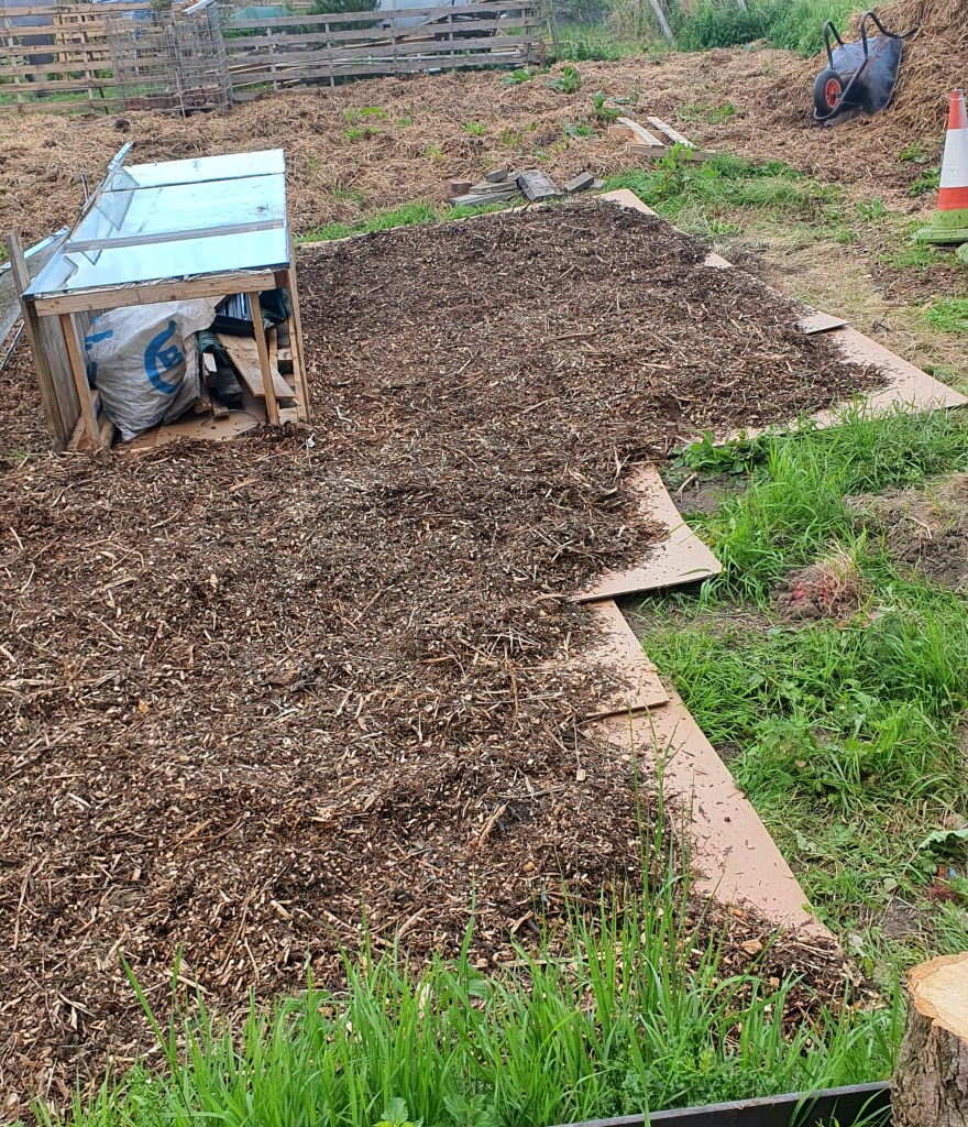It was a smelly job but someone had to do it. 18 tonne of horse poo spread on plot. And a area fenced off ready for storage of more poo.