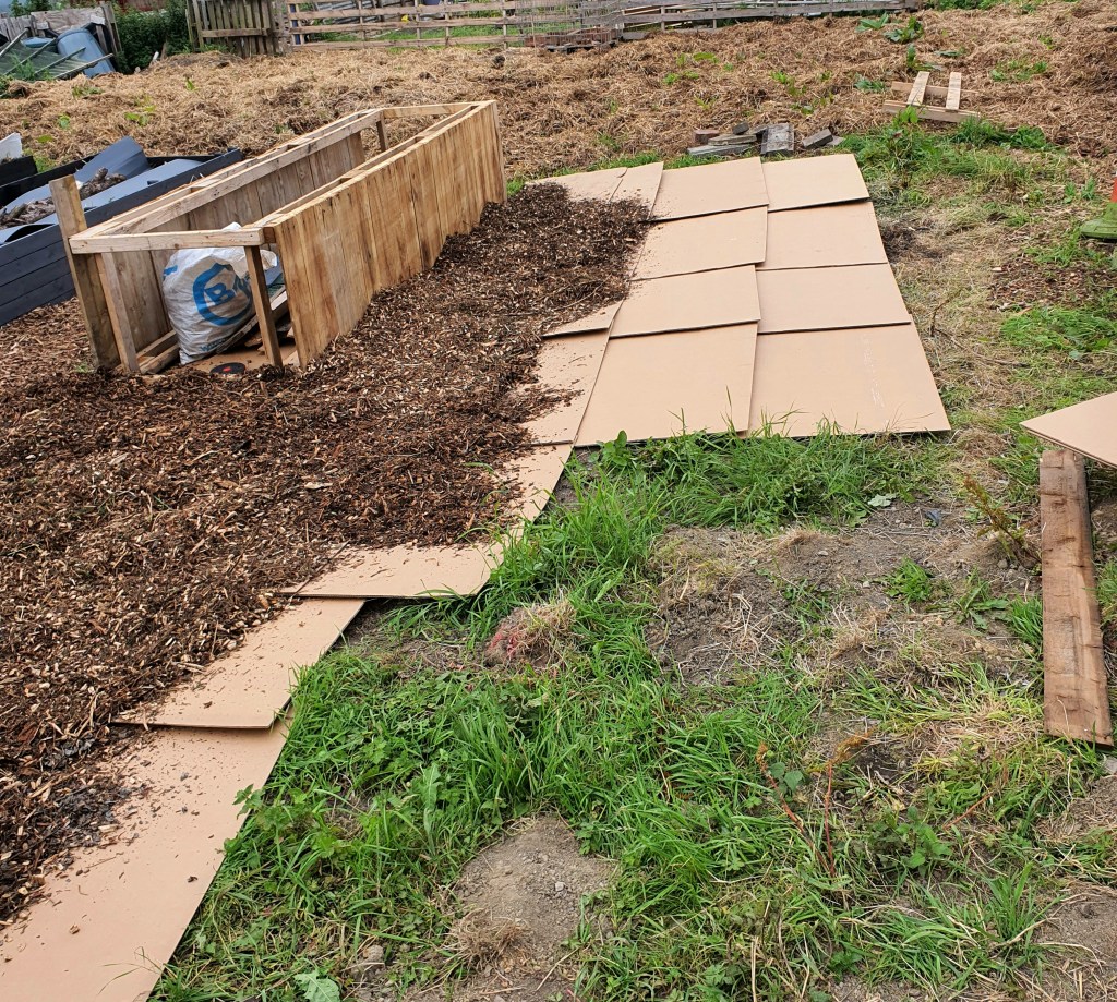 - Mulching which prevent weeds in the allotment just lay cardboard to cover the ground and then cover with wood chips. This way, you don’t need as much mulch and it completely smothers the weeds so you don’t have weeds coming up. It’s a great way to kill and prevent weeds and it’s also a good way to make inexpensive garden paths. If you use this method to mulch around existing plants, arrange the cardboard so that it leaves space for the plants. If you want to add additional plants later, simply poke a small hole in the cardboard for each one.