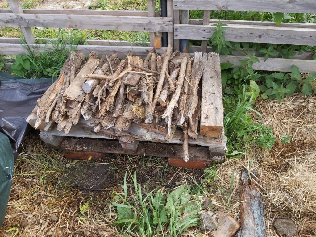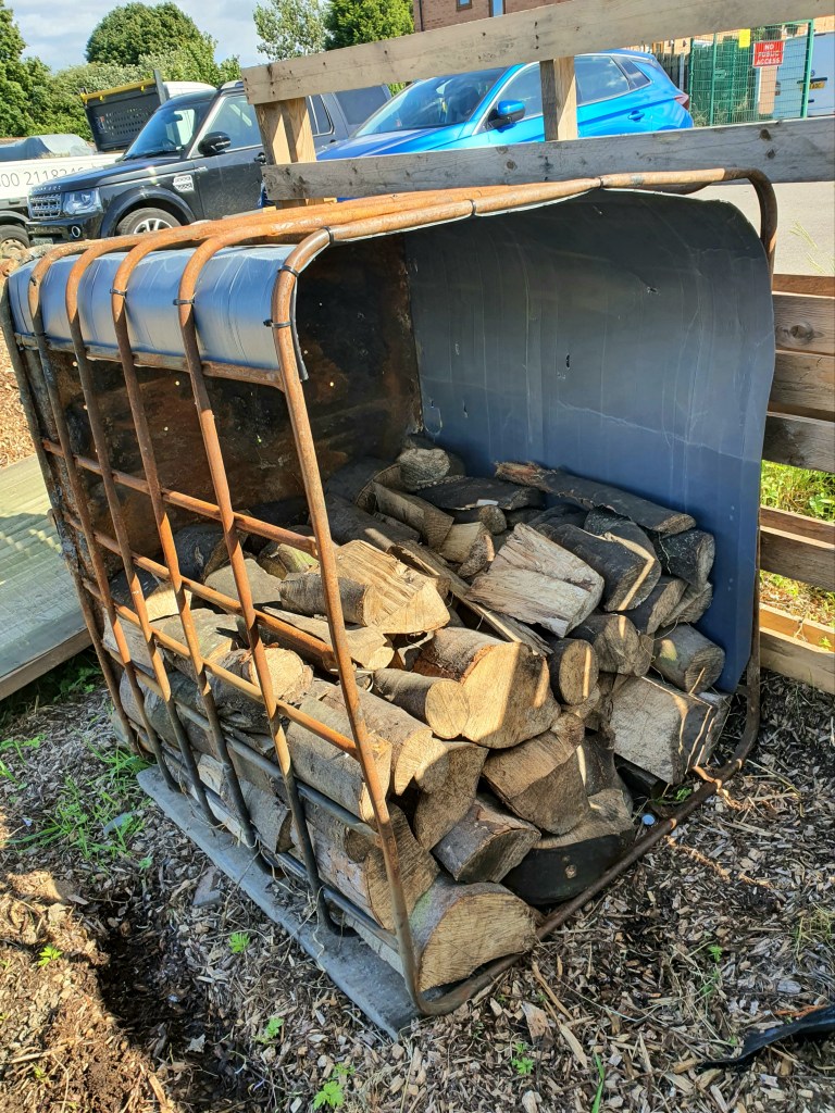 It’s amazing what you can find on your allotment what can be useful. Like this IBC water tank frame used as a rubbish burner. Til now!! a log storage bin is born. Loving the rustic look.