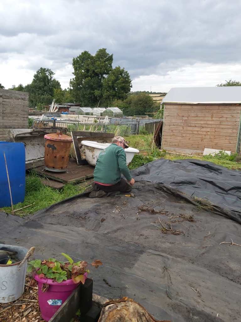 When we first acquired our plot it was head high in weeds including, a thicket of brambles and other prickly plants. A professional Bushcutter was needed, and after many hours of searching the web for local hire companies, we stumbled upon a company new to the area who were nearly £100 cheaper than their competition. After receiving advice on the differences between a Strimmer and a Brushcutter, a Petrol Bushcutter was hired and proved it was worth its weight in gold. We cleared the weeds etc down to ground level which meant at least we could then see what we were doing.