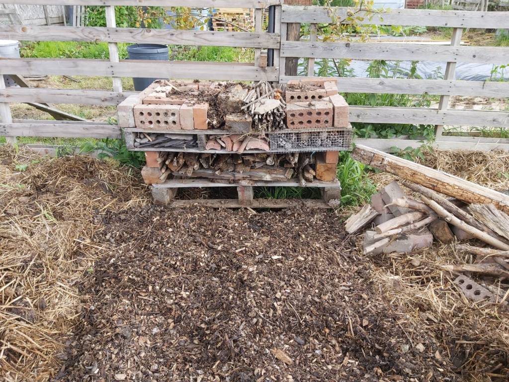 Old wooden pallets are perfect for a large hotel as they’re sturdy and come with ready-made gaps. Start by laying some bricks on the ground as sturdy corners. Leave some spaces in between the bricks – try creating an H-shape. Add three or four layers of wooden pallets on top of your bricks. If you leave larger ends, you’re more likely to attract hedgehogs.