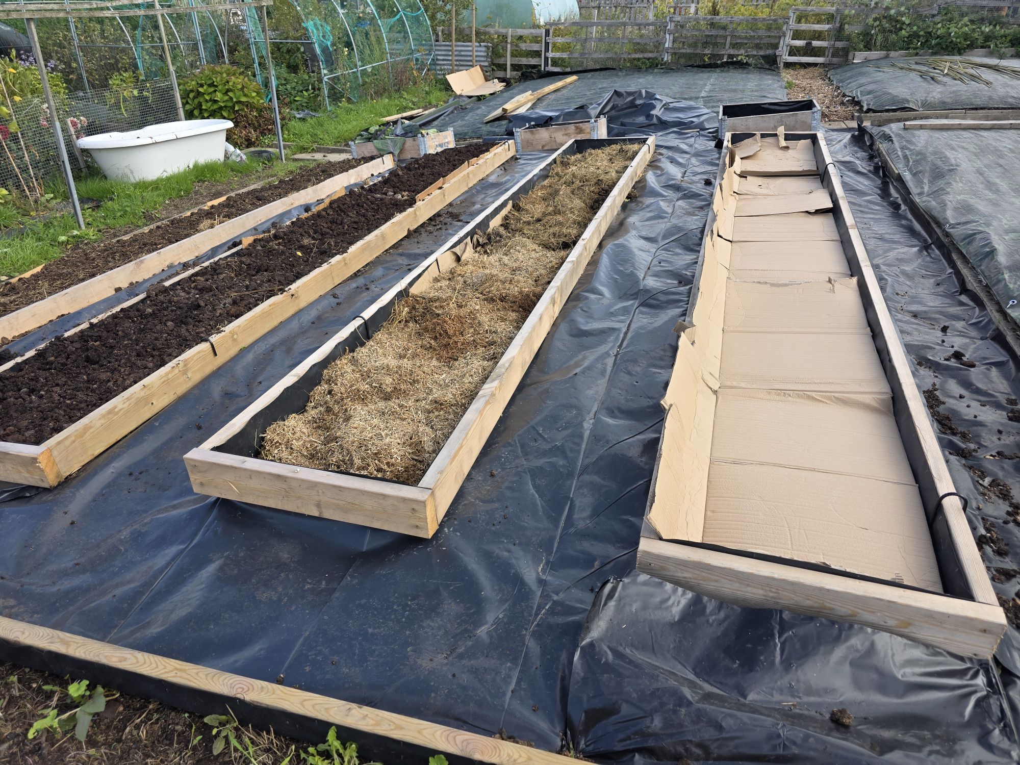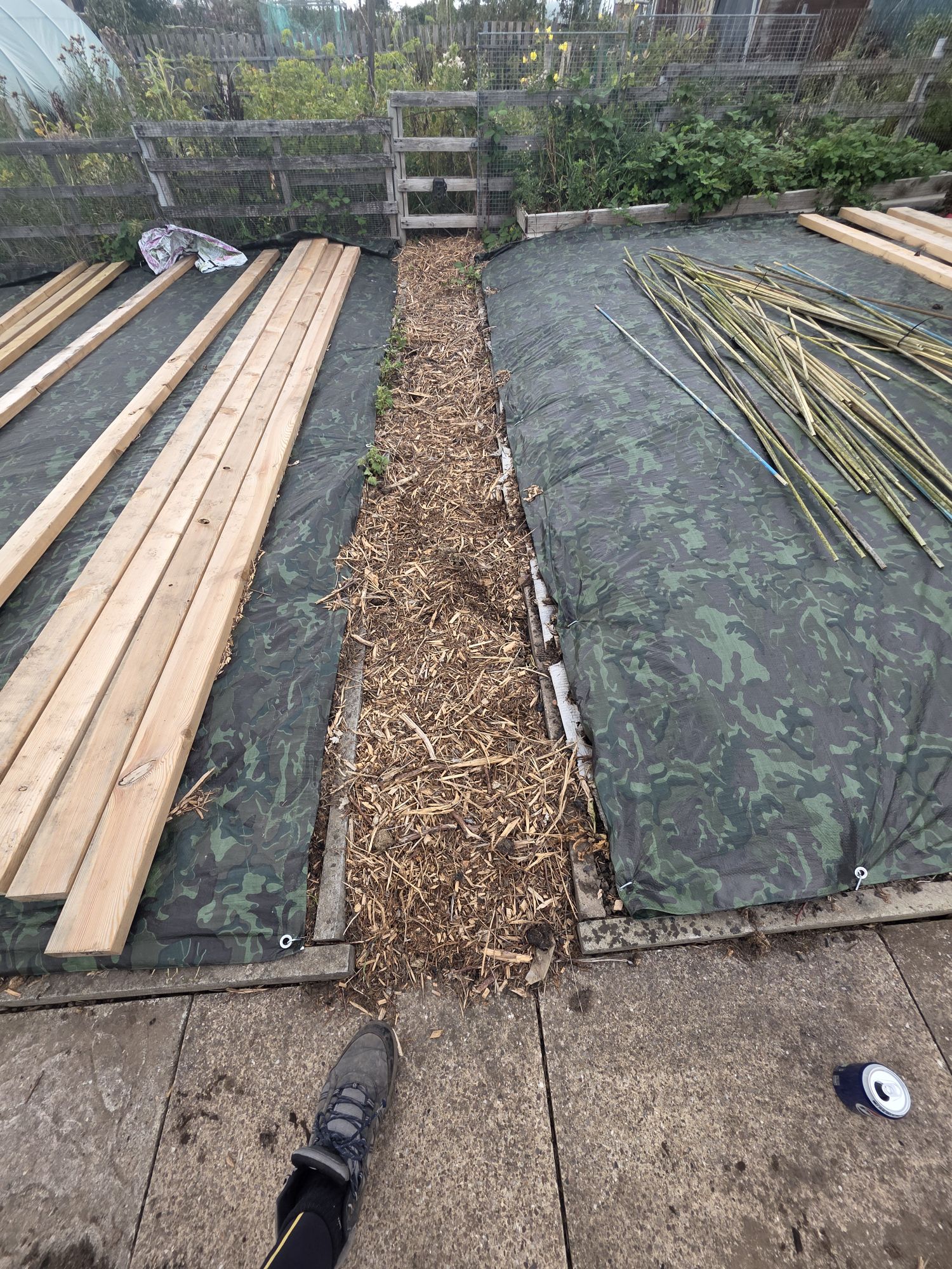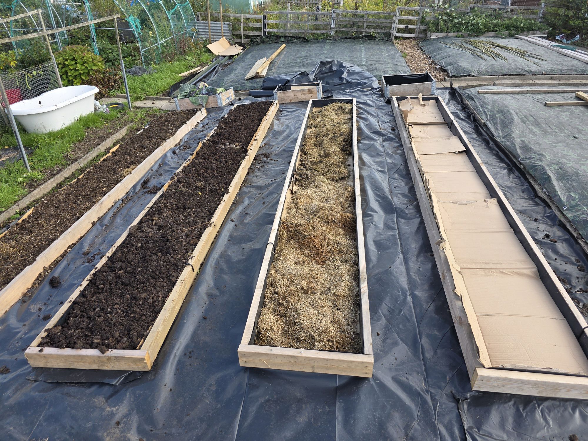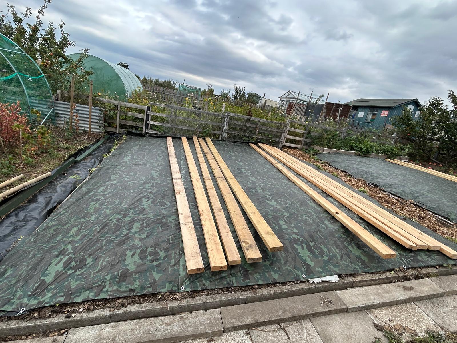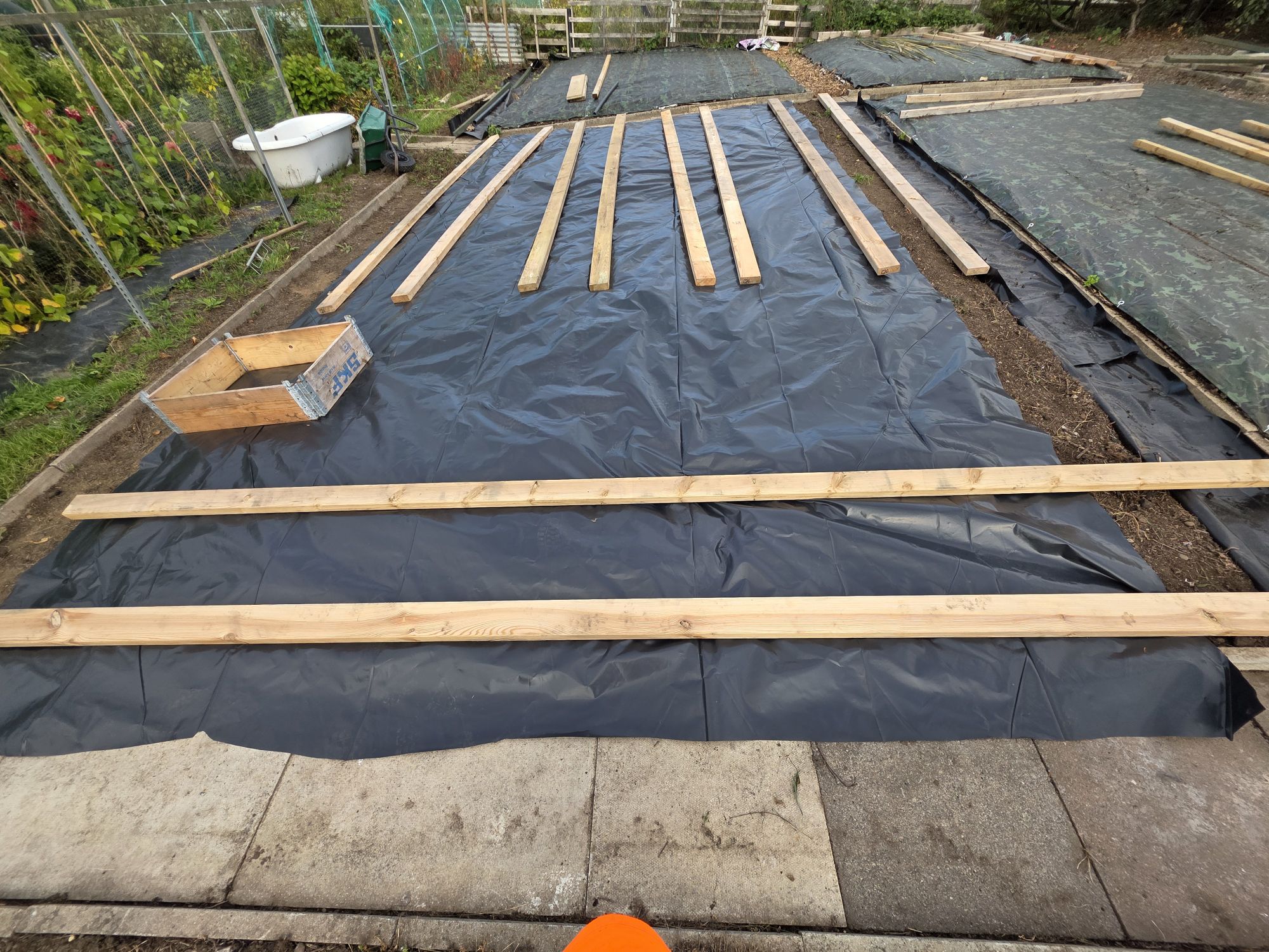 - Then, like us we covered the bed with a tarpaulin & make sure you peg it down. Which make sure no light can penetrate down into the soil.