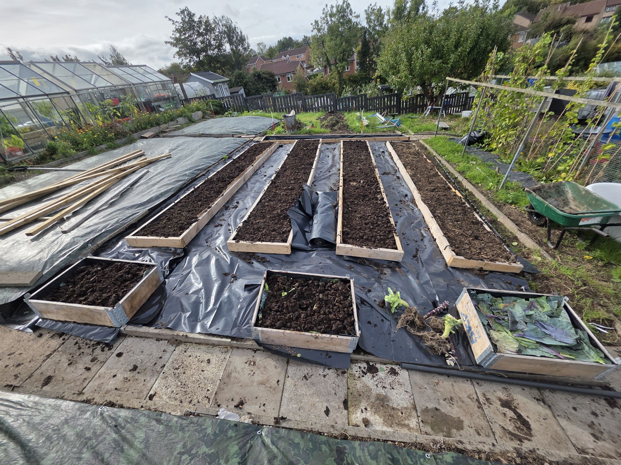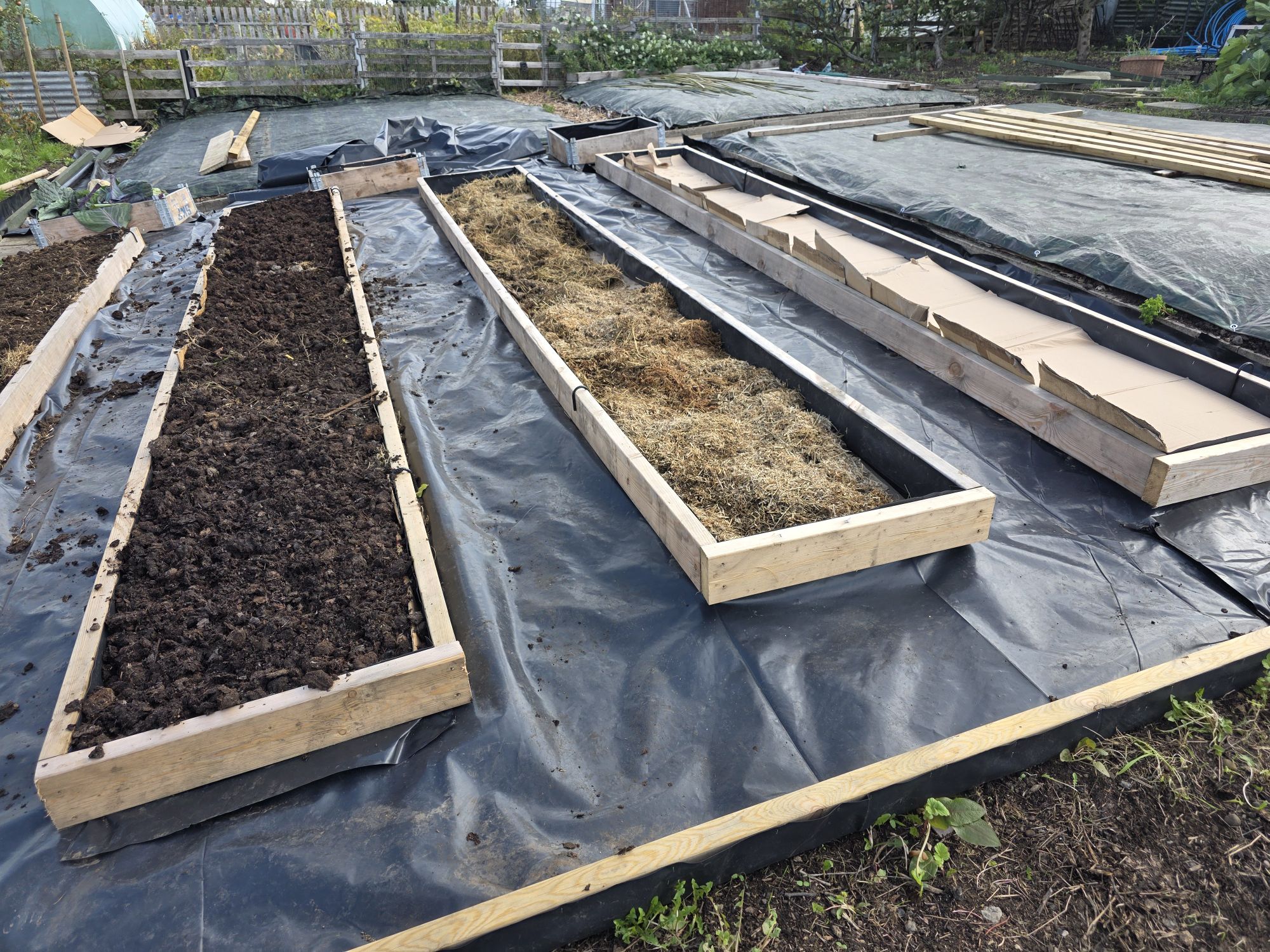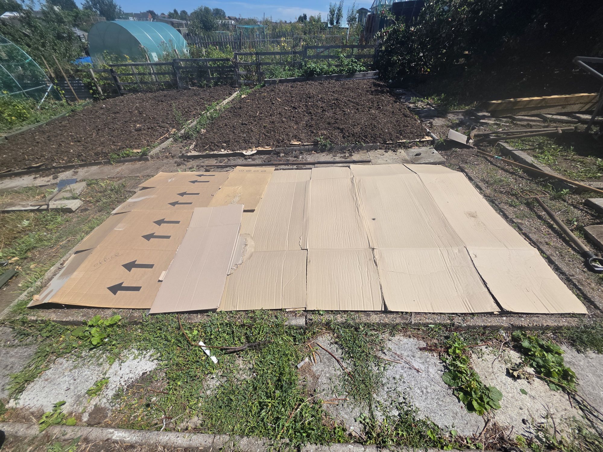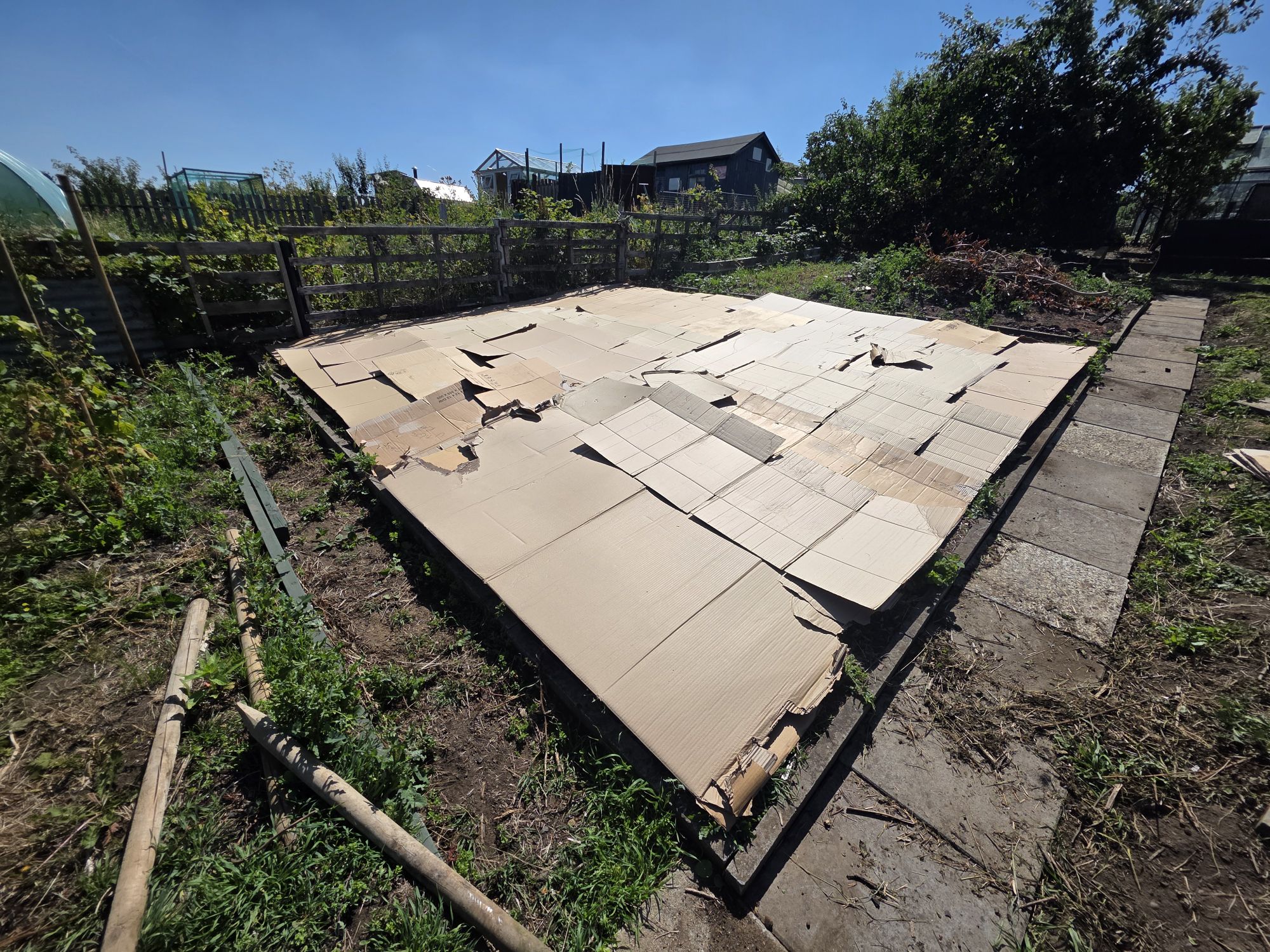 - Then, like us we covered the bed with a tarpaulin & make sure you peg it down. Which make sure no light can penetrate down into the soil.