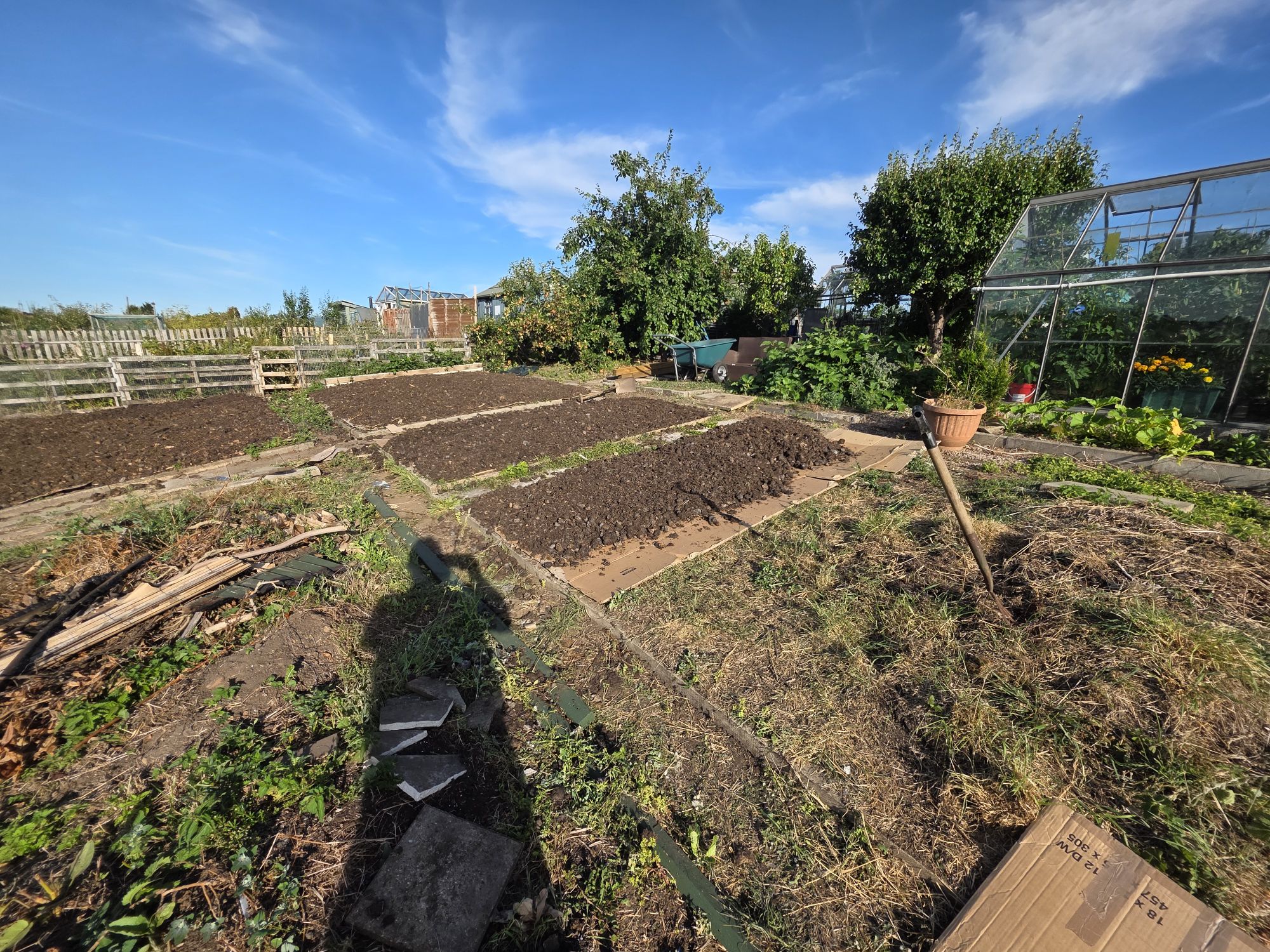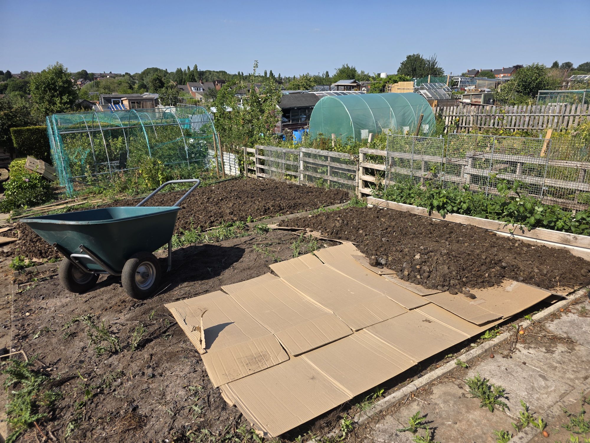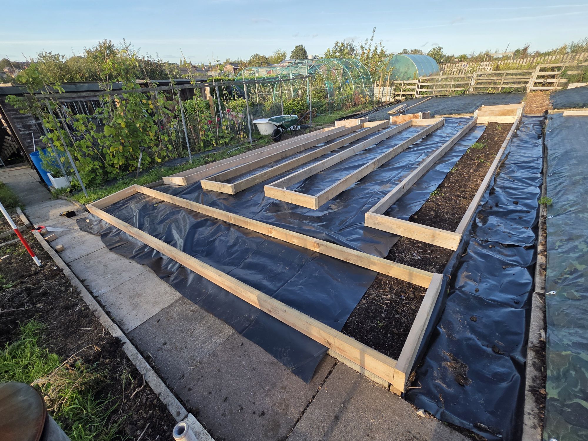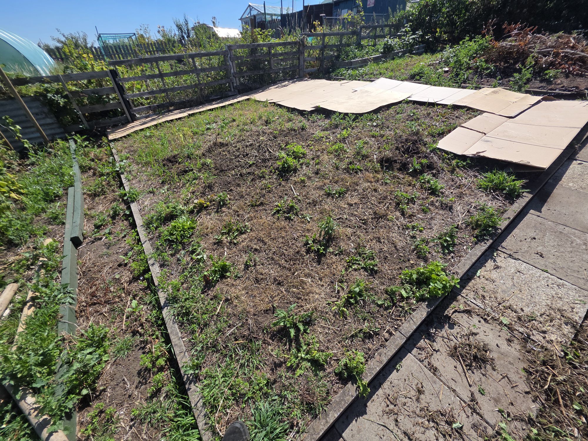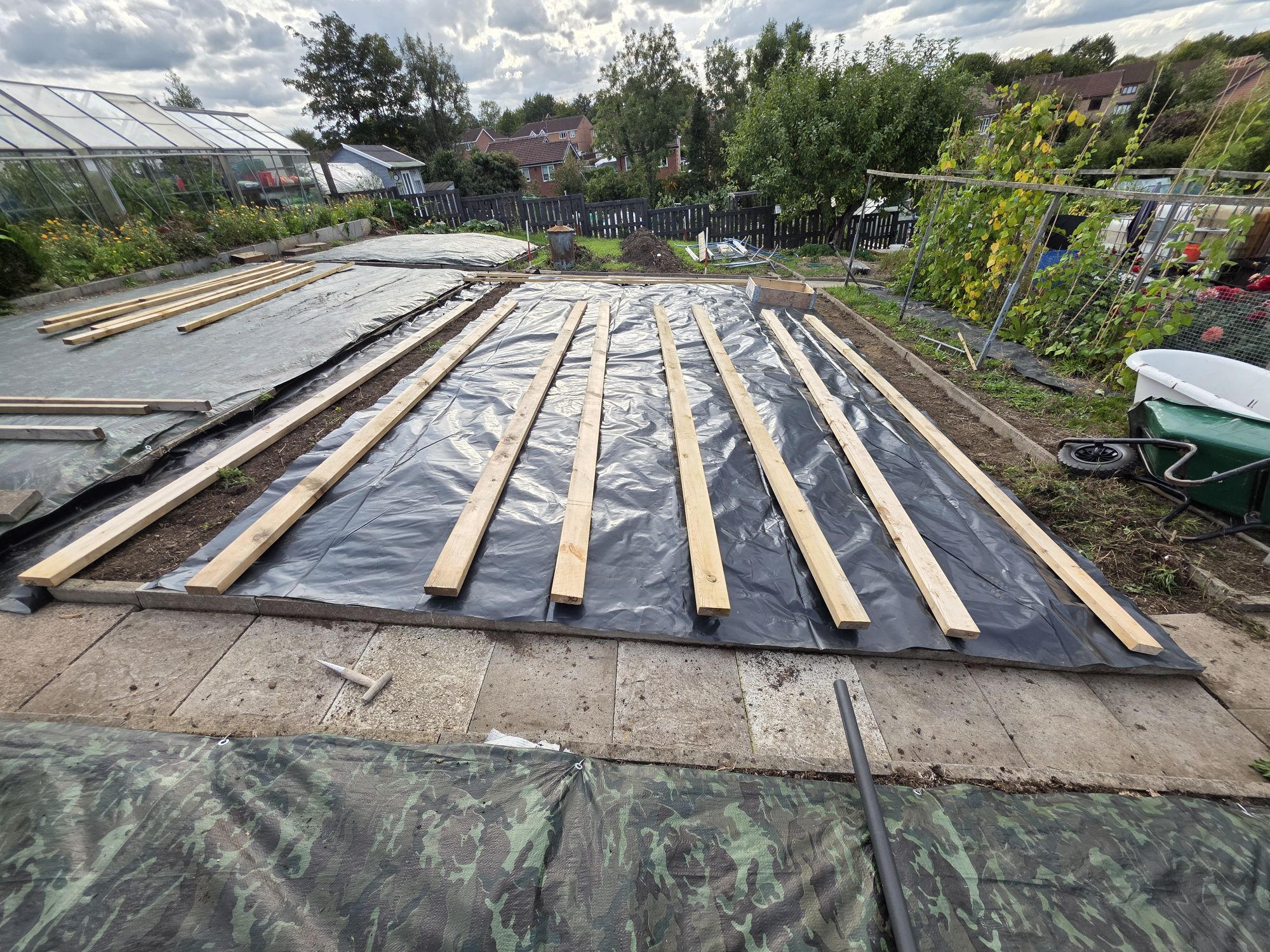 - Then, like us we covered the bed with a tarpaulin & make sure you peg it down. Which make sure no light can penetrate down into the soil.
