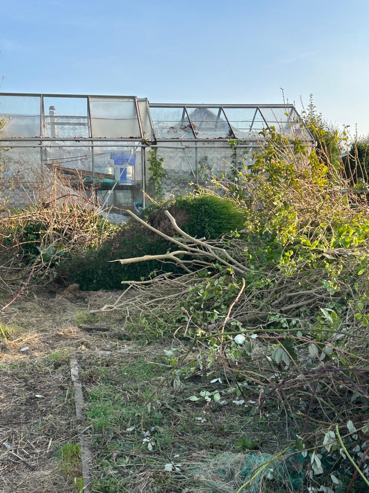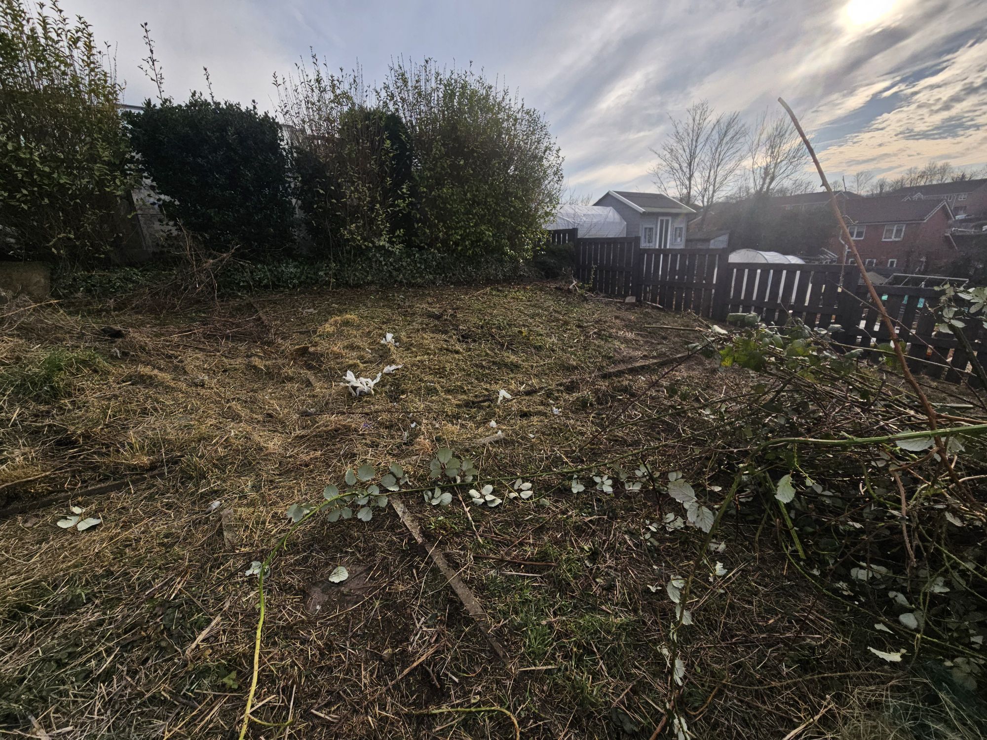 When we first acquired our plot it was head high in weeds including, a thicket of brambles and other prickly plants. A professional bush cutter was needed. After receiving advice on the differences between a strimmer and a bush cutter, a petrol bush cutter was hired from the allotment society and proved it was worth its weight in gold. We cleared the weeds etc down to ground level which meant at least we could then see what we were doing.